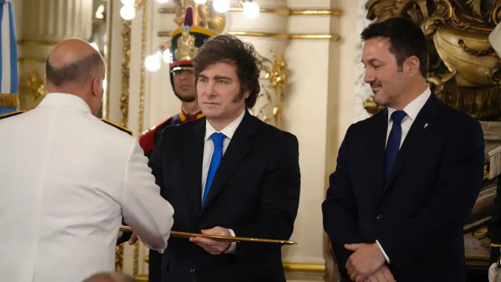 El acto, que duró menos de diez minutos, oficializó los ascensos de 35 nuevos generales, almirantes y brigadieres. El Presidente no dio discurso y participó junto al ministro saliente Luis Petri y su sucesor, Carlos Presti.