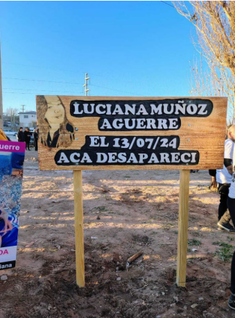 La madre de Luciana y su abuela, Mirta Muñoz, volvieron al mismo lugar donde fue vista por última vez. Allí colocaron, con sus propias manos, un cartel de madera que lleva grabado el rostro de Luciana y una frase desgarradora: “Acá desaparecí”.