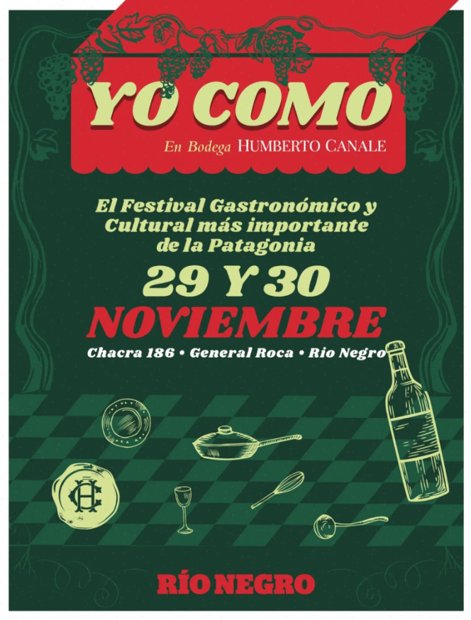 El clásico gastronómico de la Patagonia ya tiene fecha confirmada. El Festival Yo Como 2025 se realizará los días 29 y 30 de noviembre en la emblemática Bodega Humberto Canale, ubicada a pocos kilómetros de General Roca. La cita promete dos jornadas de cocina, música, fuegos, vinos y producción regional en uno de los escenarios más encantadores del Alto Valle.
