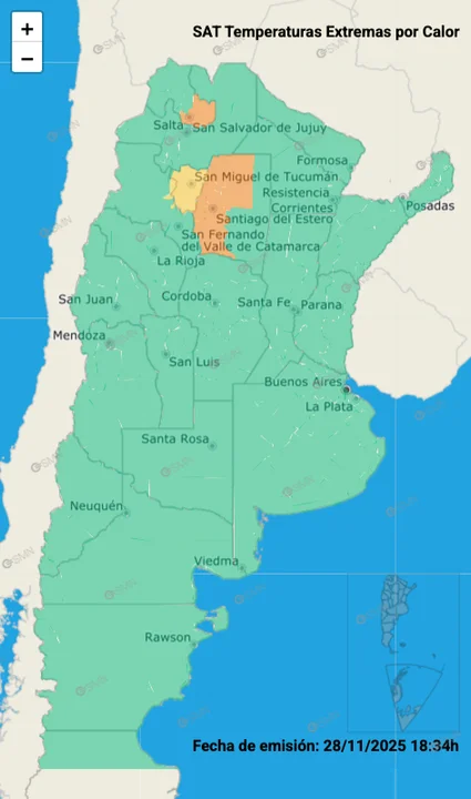 El Servicio Meteorológico Nacional (SMN) renovó este sábado las advertencias por calor extremo en diferentes regiones del país, en el marco de una semana marcada por temperaturas agobiantes. Las zonas afectadas se ubican en las provincias de Santiago del Estero, Tucumán y Jujuy, donde rige alerta amarillo y, en algunos sectores, alerta naranja.