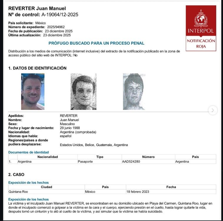 Tras meses de reclamos de la familia y denuncias por irregularidades, la causa fue reencauzada como femicidio por la Fiscalía de Quintana Roo, que finalmente libró la orden de captura internacional.