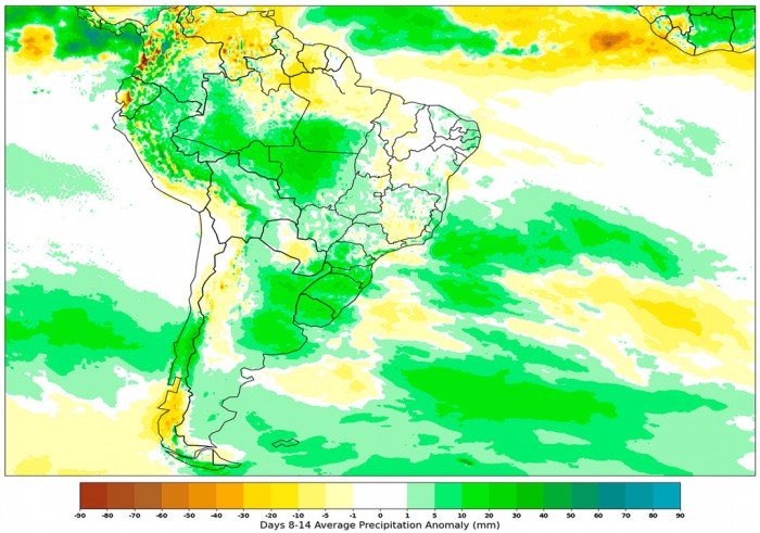 Tanto el Centro Europeo de Pronósticos (ECMWF) como el modelo GFS de Estados Unidos coinciden en mostrar anomalías de precipitación para la tercera semana del mes, lo que indica que las lluvias podrían superar ampliamente los valores normales para esta época del año.