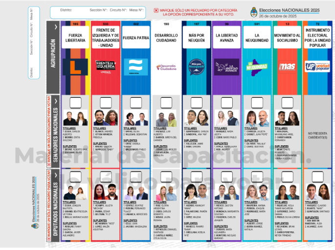 Competirán ocho listas para Senadores y nueve para Diputados, entre partidos y alianzas como La Neuquinidad, La Libertad Avanza, Fuerza Patria, Frente de Izquierda, Nuevo Más, Fuerza Libertaria, Más por Neuquén, Desarrollo Ciudadano y Unidad Popular.