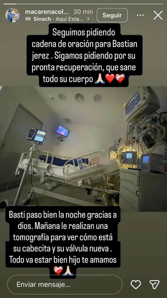 La novedad fue difundida en las últimas horas por la madre del niño, Macarena Collantes, quien a través de su cuenta de Instagram explicó que el pequeño ingresará al quirófano al mediodía tras constatarse que la válvula “no estaría drenando lo suficiente”.