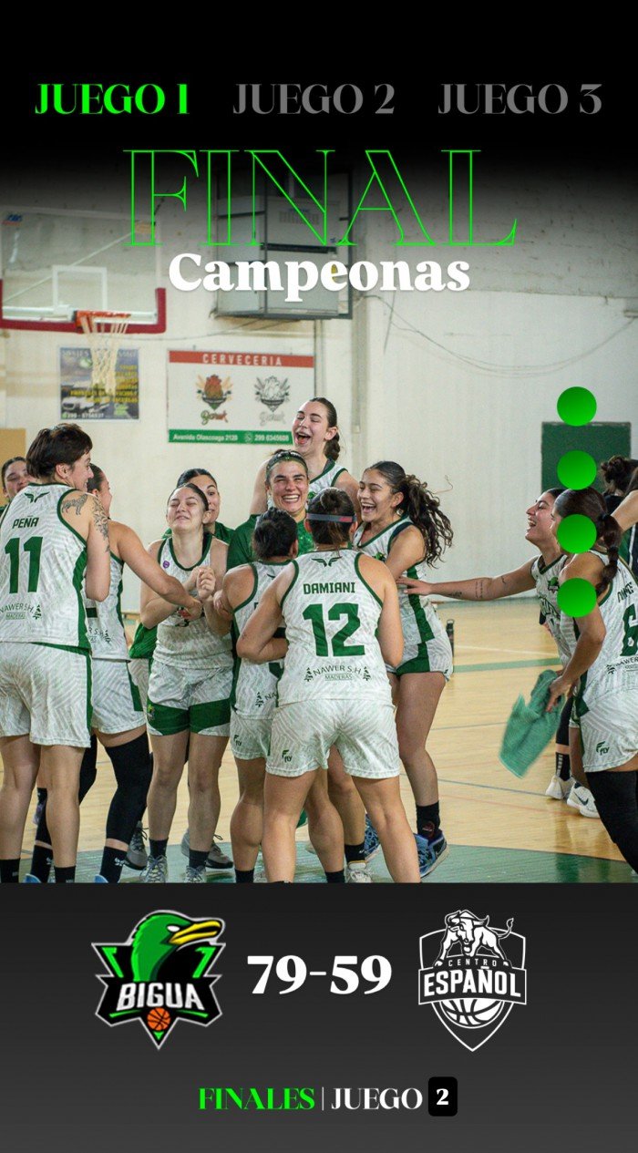 Español reaccionó en el segundo parcial y achicó distancias (18-14 en ese segmento), pero el global de 43-22 al descanso dejó a las Bigualas con el control absoluto. El complemento mantuvo la paridad, aunque con las neuquinas siempre cómodas. Un clima más caliente en el tramo final y la quinta falta de Agustina Jordheuil no cambiaron la historia: el festejo estaba asegurado.