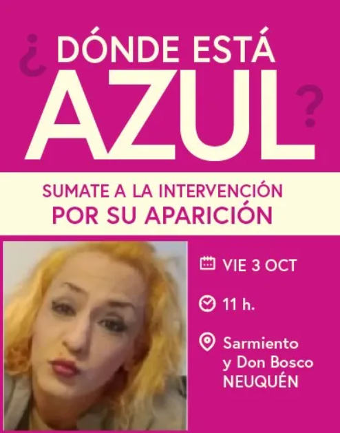 “Azul es una persona responsable, no desaparece porque sí. Siempre iba a trabajar y valoraba mucho su espacio laboral. Cuando vimos que no contestaba el teléfono, supimos que algo había pasado”, contó Juliana, amiga de la mujer.
