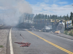 Choque frontal entre dos camiones en la Ruta 22: uno se incendió tras el impacto en la curva oeste de Cervantes febrero 18, 2026