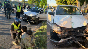 Violento accidente en Centenario: un vehículo termina sobre la vereda y deja a una mujer gravemente herida noviembre 12, 2025