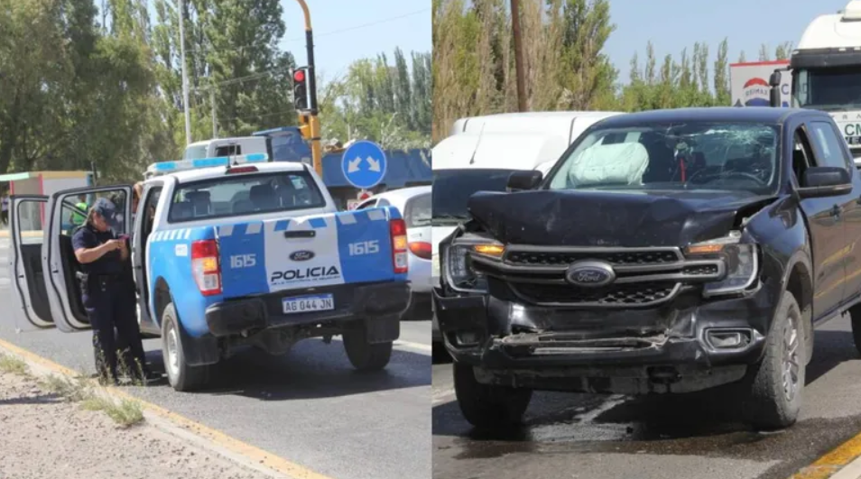 El siniestro ocurrió este lunes alrededor de las 15:30, sobre la Ruta 7, a la altura del barrio 11 de Octubre, cuando una camioneta Ford Ranger negra que circulaba en sentido Neuquén–Centenario impactó contra un patrullero de la Policía de Río Negro. El vehículo oficial involucrado fue el móvil 1615 de la Comisaría Cuarta de Alta Barda.