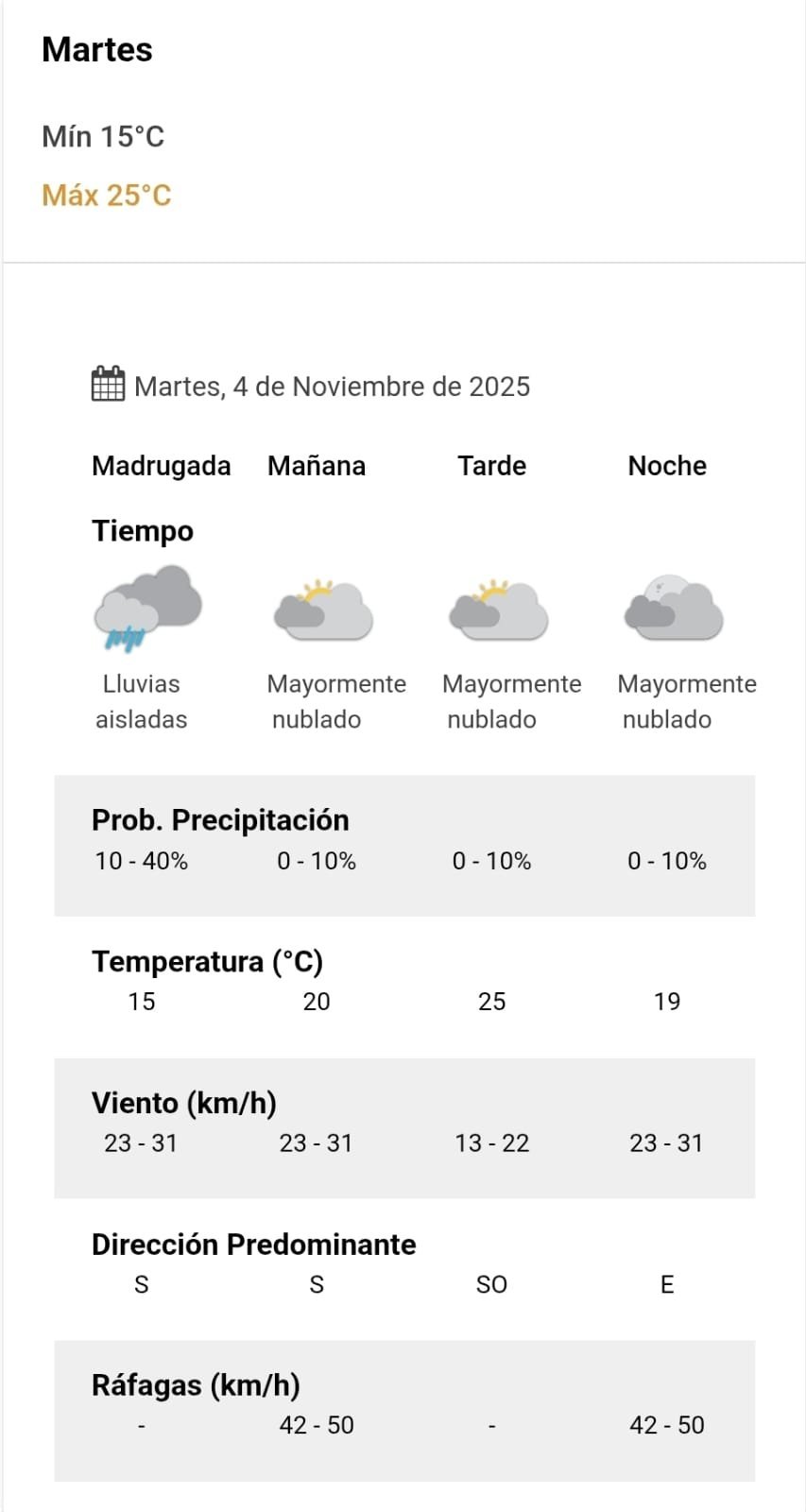 El Servicio Meteorológico Nacional anticipa que este 4 de noviembre, la temperatura rondará entre los 15 y 25 grados.