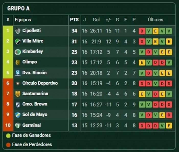 Así, con dos fechas por jugarse, Cipo lidera con 34 puntos, seguido por Villa Mitre con 31. El último clasificado parcial a la zona Campeonato es Deportivo Rincón, con 23 unidades, igual que Olimpo pero con un partido más. Por ahora, todo está muy apretado del tercer al sexto lugar, y se vienen dos fechas a todo o nada.