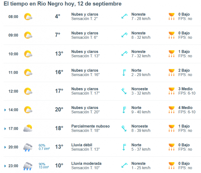 Clima en Río Negro: jornada nublada y ventosa este 12 de septiembre