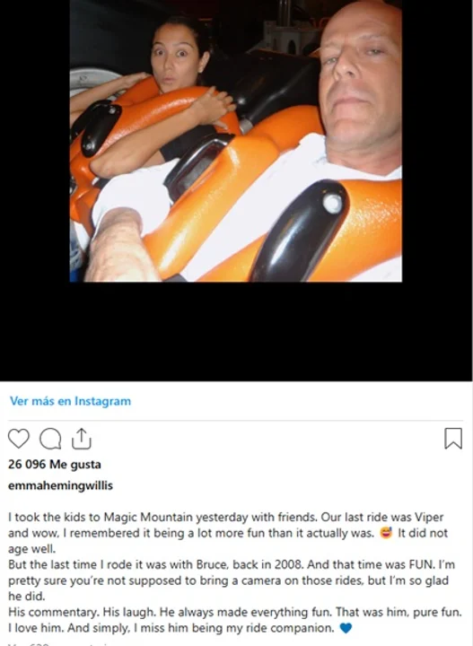 “La última vez que me subí fue con Bruce, en 2008, y fue divertido. Siempre hacía que todo fuera divertido”, escribió la empresaria. El tono emotivo y el uso del tiempo pasado, sumado a una frase en la que expresó cuánto extraña a Willis como su “compañero de viaje”, llevó a algunos usuarios a interpretar el mensaje como una despedida.
