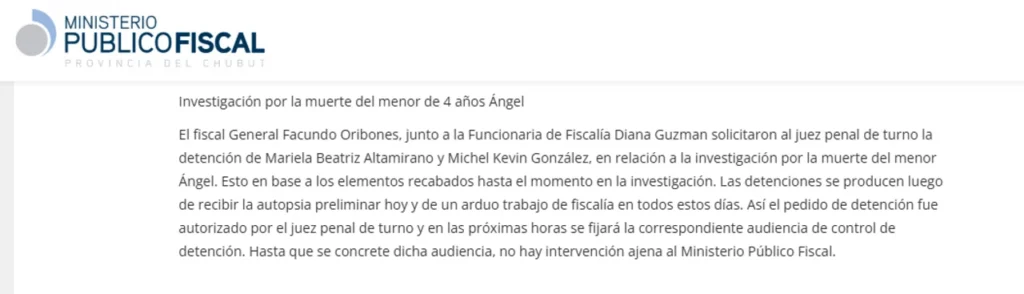 Ángel falleció el 5 de abril. En un primer momento, su madre había indicado que el niño se descompensó mientras dormía. Sin embargo, los avances de la causa y los peritajes médicos pusieron en duda esa versión y orientaron la investigación hacia un posible hecho de violencia.