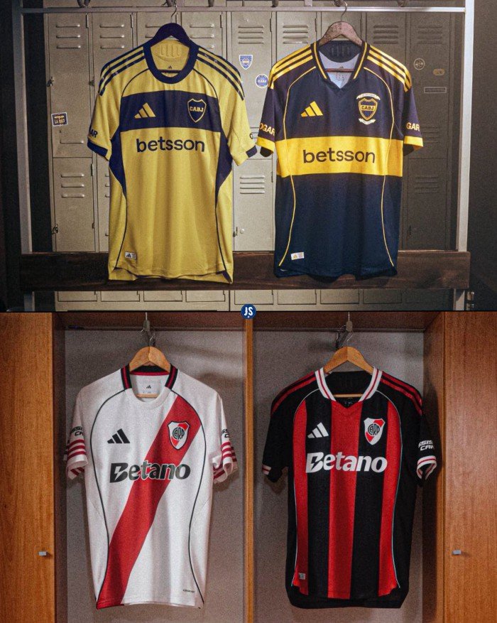 En tanto, River se inclinó por un modelo que remite a su participación en 2015, con detalles rojos en las mangas y una suplente negra con bastones verticales.
