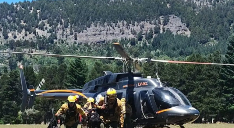 - Operativo: El helicóptero 407 del Servicio Nacional de Manejo del Fuego (SNMF) realizó parte de las 12 descargas de agua destinadas a este sector.