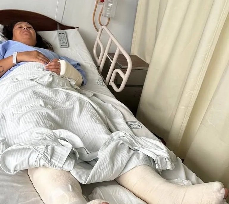 Karina presenta fracturas vertebrales y lesiones en las piernas, por lo que será sometida a nuevas evaluaciones médicas antes de definir los próximos pasos quirúrgicos. Tras su llegada al país, fue trasladada por vía terrestre a la capital provincial y permanece internada en el área de cuidados progresivos del hospital.