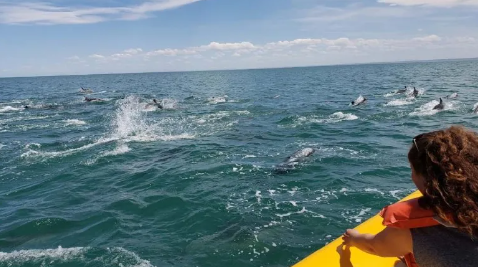 En Puerto Madryn, el verano trae un cambio de escenario en el gran espectáculo natural del Golfo Nuevo. Cuando la ballena franca austral comienza su retirada de las aguas patagónicas, otros protagonistas emergen y se adueñan del show, muchas veces a pocos metros de la costa: los delfines, que nadan en grupo, se acercan a las embarcaciones y sorprenden con saltos veloces que despiertan aplausos y cámaras listas para capturar el momento.