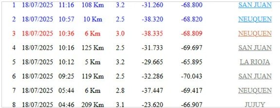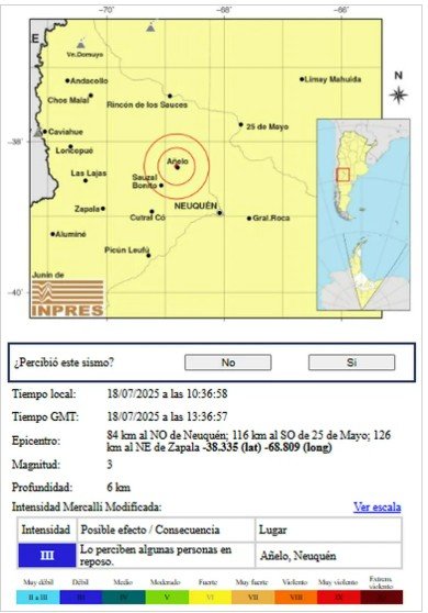 El Instituto Nacional de Prevención Sísmica (INPRES) registró este viernes tres movimientos sísmicos en la zona de Vaca Muerta. Uno de ellos, ocurrido cerca de Añelo, fue calificado por vecinos como de fuerte intensidad.