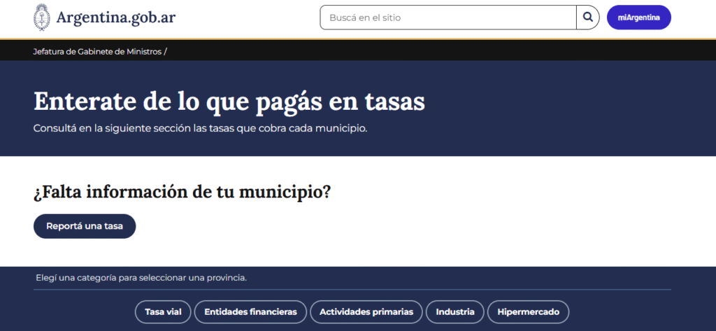 El Gobierno nacional habilitó una página web para que los ciudadanos de todo el país puedan reportar voluntariamente las tasas que cobran los municipios, en el marco de una nueva ofensiva política y fiscal impulsada desde la administración de Javier Milei.