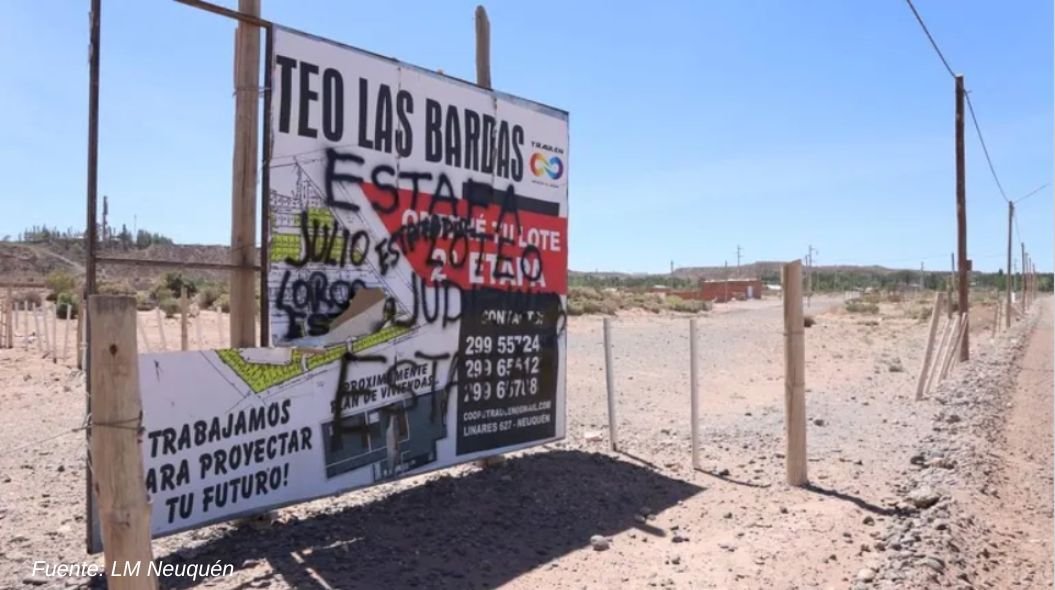 Más de 300 familias denunciaron haber sido víctimas de una presunta estafa millonaria en el oeste de Neuquén, vinculada al fideicomiso “Las Bardas”, que ofrecía lotes en la zona de Bajada de Maida, en tierras privadas aún en litigio pertenecientes a la sucesión de la familia Fava. Según la presentación judicial ingresada esta semana al Ministerio Público Fiscal, el perjuicio económico podría superar los 2.400 millones de pesos.