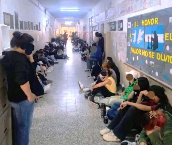 La medida fue impulsada por los propios alumnos y contó con el acompañamiento de docentes y familias, que se acercaron al colegio para respaldar el reclamo y visibilizar la situación.