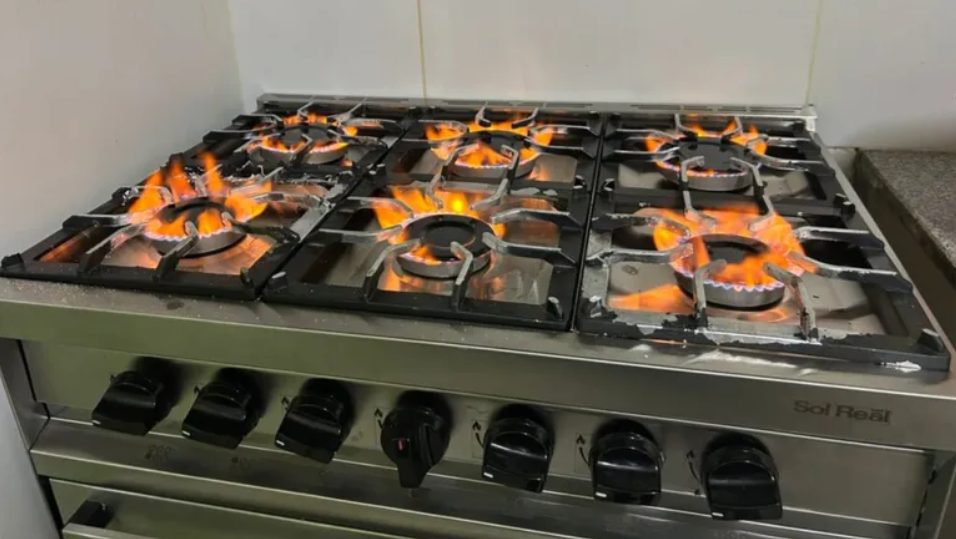 Durante la inspección también se identificaron irregularidades en los artefactos a gas. Uno de los indicios fue el color de la llama de las hornallas, que no presentaba el azul característico de una combustión correcta, lo que sugiere fallas que podrían generar emisiones contaminantes.