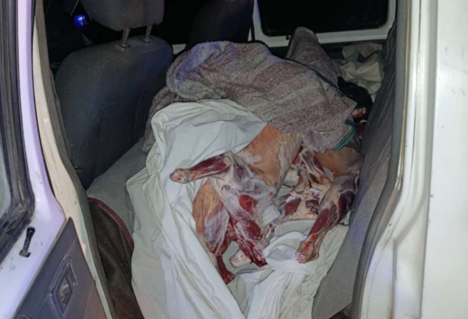 Horas más tarde, a las 04:50, otro control en el paraje Perito Moreno permitió detener una camioneta Nissan doble cabina blanca, conducida por un joven de 27 años. El hombre admitió que transportaba diez corderos faenados, con un peso total de 100 kilos, destinados al circuito ilegal de comercialización. La Brigada Rural procedió al decomiso inmediato de la carne.