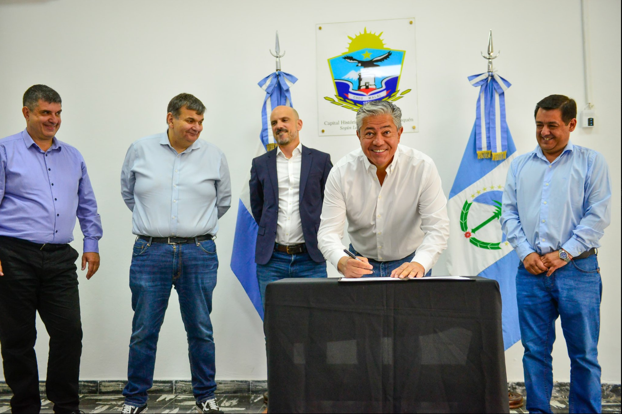 El gobernador Rolando Figueroa firmó este viernes una serie de convenios de cooperación y financiamiento destinados a ejecutar obras de infraestructura urbana en localidades de las regiones del Pehuén y Alto Neuquén. El acto tuvo lugar en la municipalidad de Chos Malal y contó con la presencia de alrededor de 25 intendentes y presidentes de comisiones de fomento.