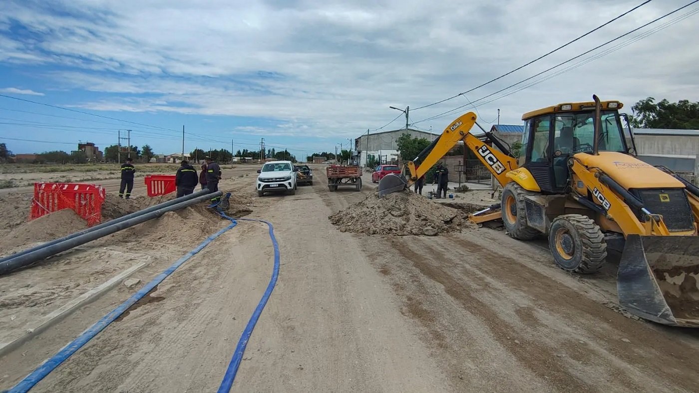 Los trabajos se ejecutan con mano de obra y materiales propios de Aguas Rionegrinas, con dos equipos que están trabajando en forma coordinada, uno de ellos dedicado al acueducto principal y el segundo a la red local.