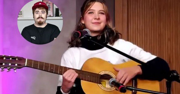 Se llama Olivia y tiene solo 16 años, es de Neuquén y fue especialmente para ver el show. Tocó con su guitarra y cantó para Migue y lo deslumbró con su talento.