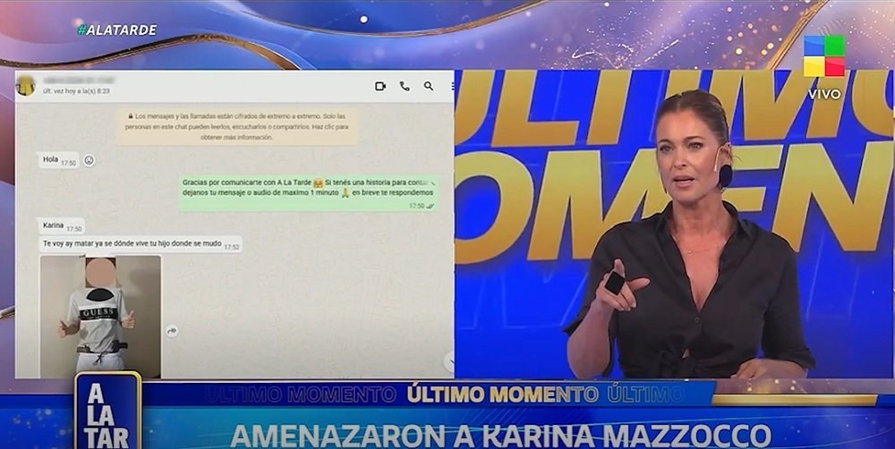 Karina Mazzocco comenzó A la tarde (América TV) de una forma inusual. La normalidad del ciclo se vio alterada cuando la conductora inició su programa denunciando que fue amenazada de muerte. La gravedad del incidente consiguió que tanto la conductora y el equipo de su programa presenten la denuncia policial y las autoridades ya investigan el origen de los inquietantes mensajes.