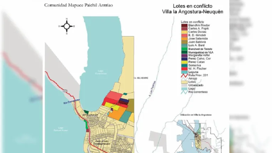 El caso de Ginóbili es solo uno entre al menos 12 conflictos vigentes en Villa La Angostura, donde distintos privados y familias reclaman la restitución de tierras ocupadas por la comunidad Paichil Antriao.