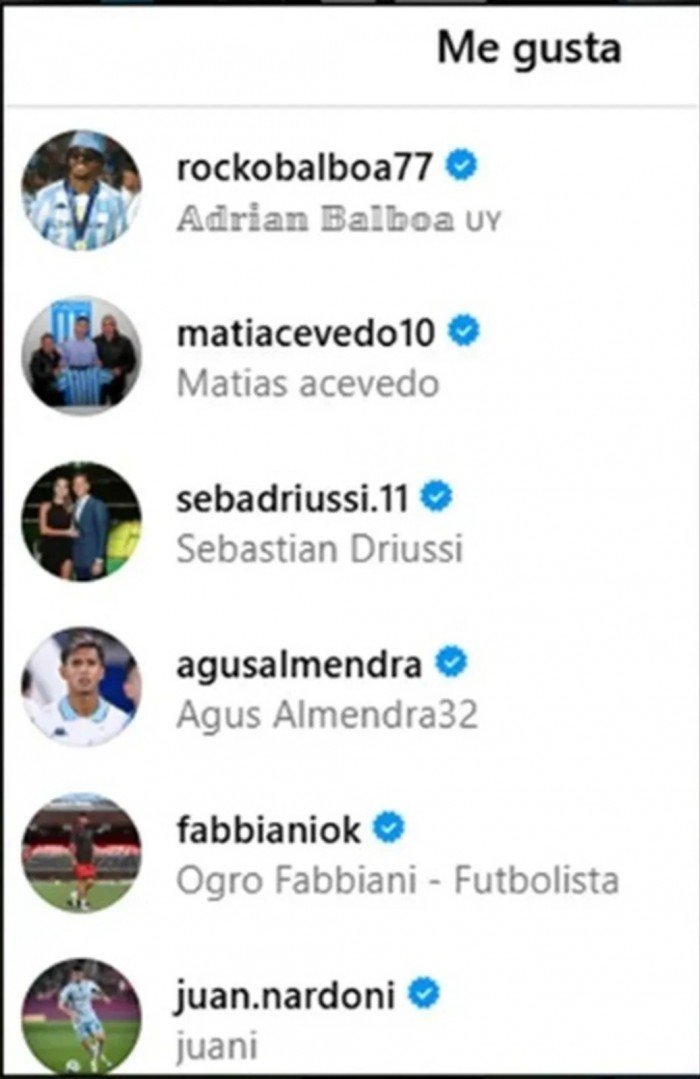 El posteo de Salas no pasó inadvertido. Rápidamente recibió “me gusta” de varios jugadores del plantel, como Juan Nardoni, Agustín Almendra, Rocky Balboa, Germán Conti y Adrián Martínez, entre otros. También se sumaron exjugadores como Juanfer Quintero, el DT de Newell’s, Cristian Fabbiani, y Gonzalo Costas, hijo del entrenador.