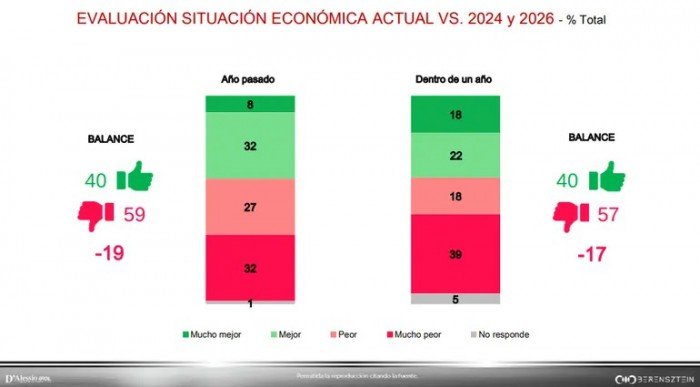 Respecto de las expectativas para el próximo año, el 57% de la población cree que la economía estará peor, frente a un 40% que anticipa una mejora.
