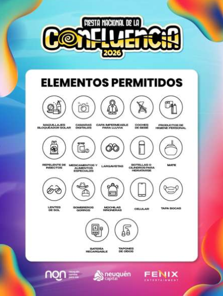 Desde que comenzó la Fiesta de la Confluencia este jueves 5 de febrero hay dudas de qué elementos pueden ingresarse y cuáles no. Aunque previamente se había detallado el listado, los asistentes han manifestado tener problemas en los ingresos con sus pertenencias.