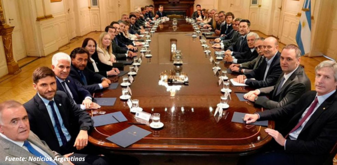 El presidente Javier Milei encabezó este jueves una reunión con gobernadores y vicegobernadoras de diversas provincias en el Salón Eva Perón de Casa Rosada, donde presentó las prioridades del Presupuesto 2026 y planteó tres reformas estructurales, la laboral, tributaria y del Código Penal.