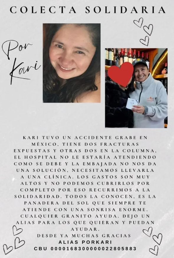Ante la urgencia, la familia de Karina organizó una colecta solidaria para cubrir los gastos médicos y de traslado.