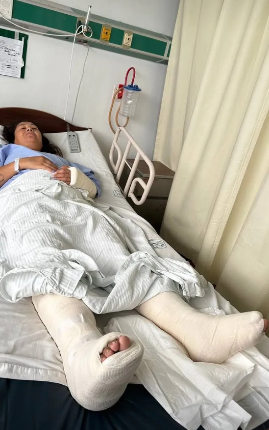 Según detallaron sus allegados, Karina sufrió dos fracturas expuestas y lesiones vertebrales graves (en las vértebras L2 y L5), además de una fractura en el tobillo izquierdo. Su estado requiere una intervención quirúrgica urgente para evitar una parálisis o incluso la amputación de una pierna.