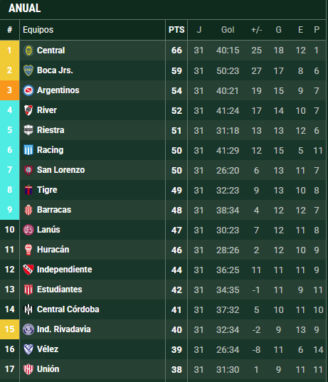 Pero si River pierde ante Vélez o no logra meterse entre los tres primeros de la tabla general, su única esperanza será que el campeón del torneo local sea uno de los equipos ya clasificados (Central, Boca o el propio Argentinos). En ese caso, se liberaría un cupo y el conjunto de Gallardo accedería a la fase de grupos.