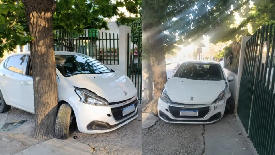 Durante la mañana de este jueves, el barrio Santa Genoveva amaneció con la sorprendente imagen de un Peugeot 208 blanco incrustado entre la reja y las paredes de una vivienda, además de un árbol de la vereda. El hecho ocurrió en la esquina de Entre Ríos y Alderete, y al momento del hallazgo no había nadie en el lugar.
