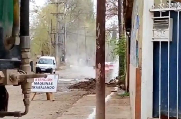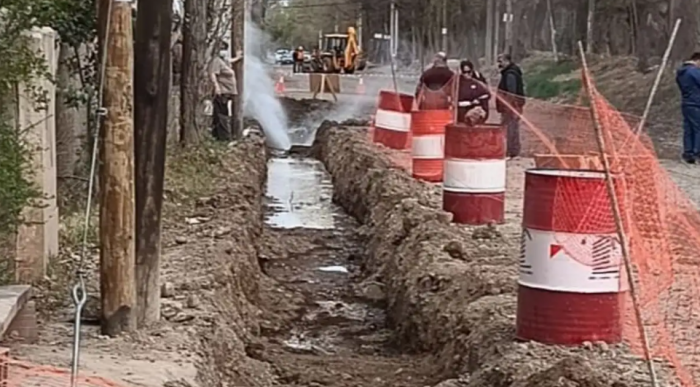 Una máquina de obra golpeó una cañería de 90 centímetros y provocó una fuga de gran magnitud. El trabajador salió despedido por la presión y fue trasladado al hospital. Camuzzi controló la situación.