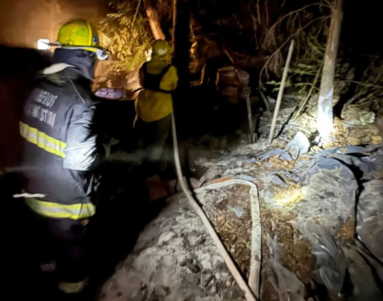 El fuego se desató cerca de la medianoche en una vivienda del barrio Manzano. La rápida intervención de bomberos, brigadistas y policía evitó que las llamas avanzaran hacia el bosque lindero.