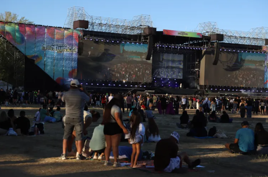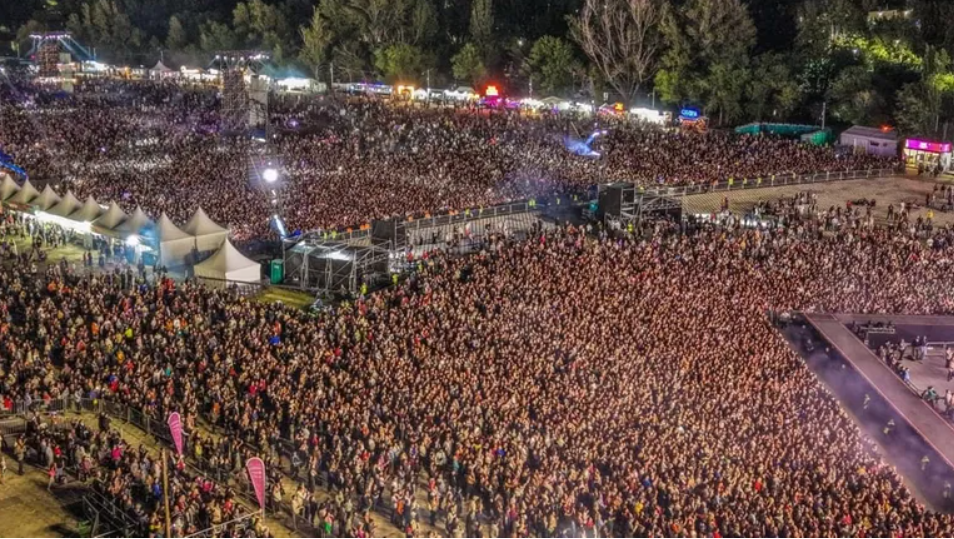 La primera noche confirmó que el predio ya mostraba movimiento intenso desde antes de las 18, cuando empezaron a ubicarse miles de personas alrededor del escenario principal. Conforme avanzó la tarde, el público fue ocupando sectores del campo general y también espacios más cercanos al escenario.