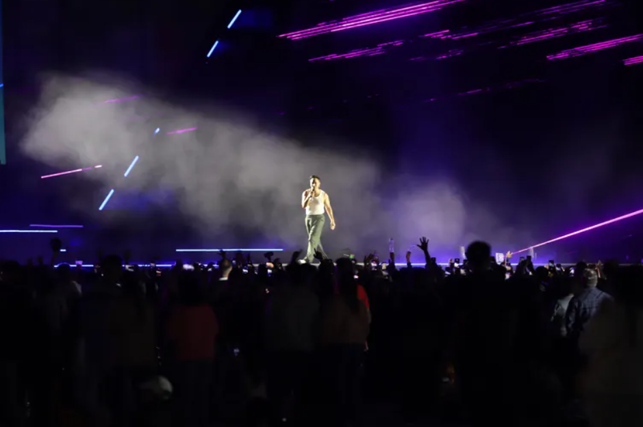 Las bandas que abrieron el tramo principal del show prendieron a la multitud con sus repertorios. Migrantes inició su presentación con temas emblemáticos del género cumbia pop, seguido de Rombai que mantuvo la energía entre los presentes.