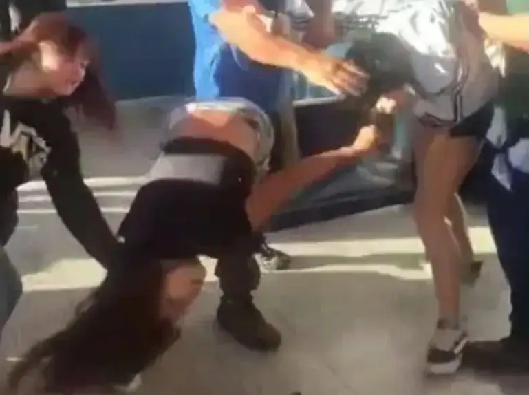 El hecho tuvo lugar a la salida del colegio y fue protagonizado por dos alumnas de segundo año. En las imágenes se observa una violenta agresión física, con golpes de puño, patadas y forcejeos en el suelo, lo que obligó a la intervención de adultos para separarlas mientras otros alumnos observaban la escena.
