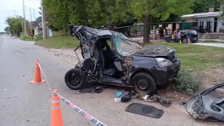 Violento accidente en Córdoba: un auto terminó destruido y dos personas murieron